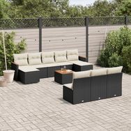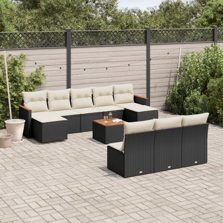 Salon de jardin 11 pcs avec coussins noir resine tressee