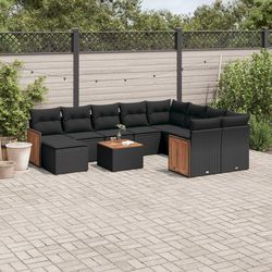 Salon de jardin 11 pcs avec coussins noir resine tressee