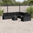 Salon de jardin 11 pcs avec coussins noir resine tressee