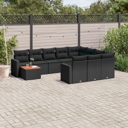 Salon de jardin 11 pcs avec coussins noir resine tressee