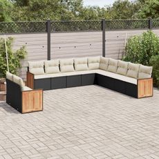 Salon de jardin 11 pcs avec coussins noir resine tressee