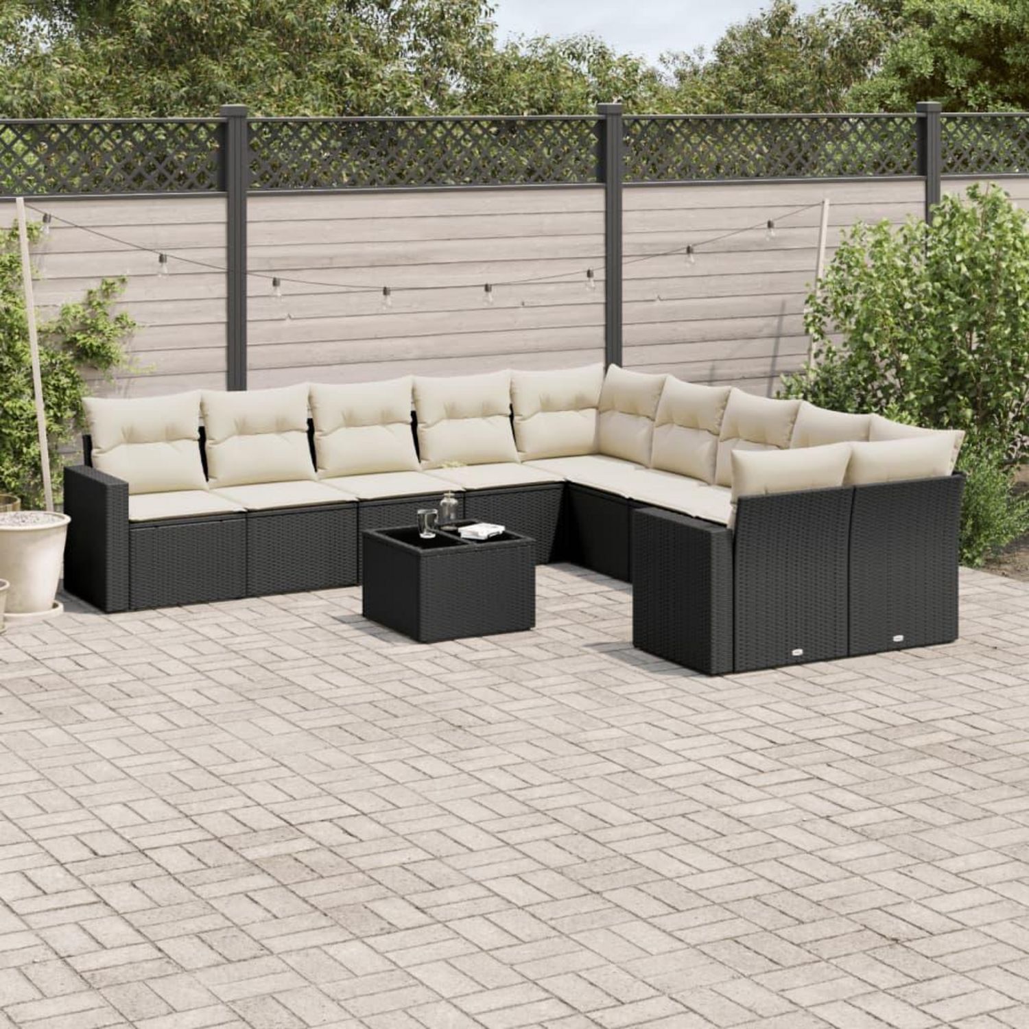 Salon de jardin 11 pcs avec coussins noir resine tressee