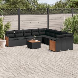 Salon de jardin 11 pcs avec coussins noir resine tressee
