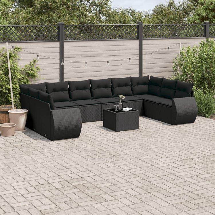 Salon de jardin 11 pcs avec coussins noir resine tressee