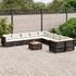 Salon de jardin 11 pcs avec coussins noir resine tressee