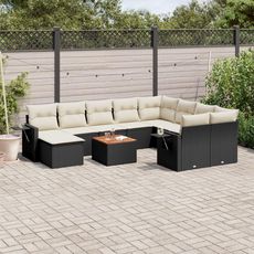 Salon de jardin 11 pcs avec coussins noir resine tressee