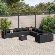 Salon de jardin 11 pcs avec coussins noir resine tressee