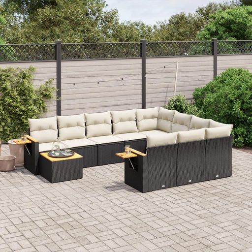 Salon de jardin 11 pcs avec coussins noir resine tressee