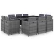 Salon de jardin 11 pcs avec coussins Resine tressee Gris