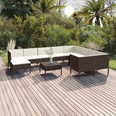 Salon de jardin 11 pcs avec coussins Resine tressee Marron