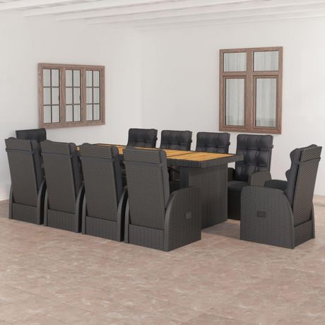 Salon de jardin 11 pcs avec coussins resine tressee noir