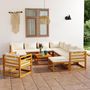 Salon de jardin 12 pcs avec coussin Creme Bois d'acacia solide