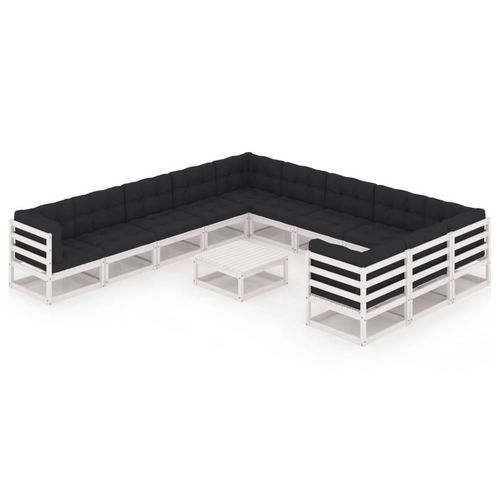Salon de jardin 12 pcs avec coussins Blanc Bois de pin massif