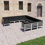 Salon de jardin 12 pcs avec coussins Blanc Bois de pin massif