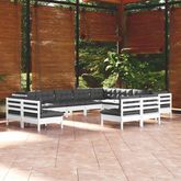 Salon de jardin 12 pcs avec coussins blanc bois de pin solide