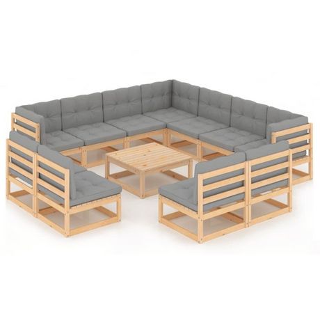 Salon de jardin 12 pcs avec coussins Bois de pin massif