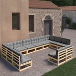 Salon de jardin 12 pcs avec coussins Bois de pin massif