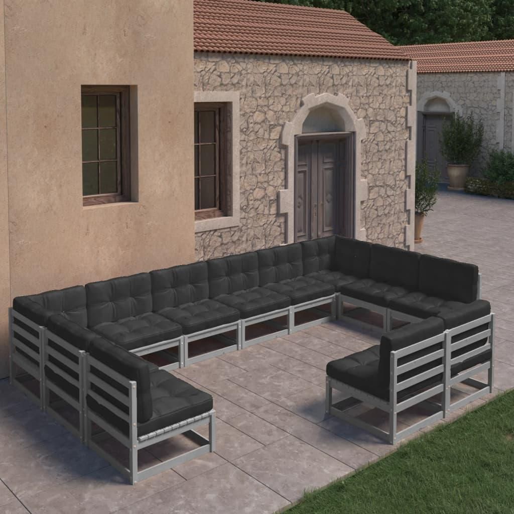 Salon de jardin 12 pcs avec coussins Gris Bois de pin massif