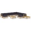 Salon de jardin 12 pcs avec coussins gris fonce bambou