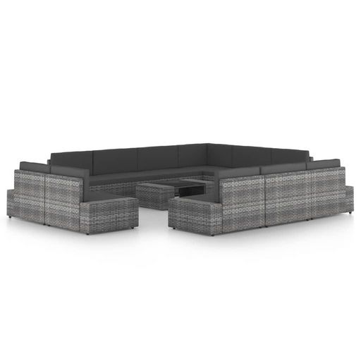 Salon de jardin 12 pcs avec coussins Gris Resine tressee