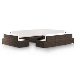Salon de jardin 12 pcs avec coussins Marron Resine tressee