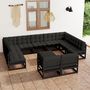 Salon de jardin 12 pcs avec coussins Noir Bois de pin massif