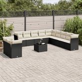 Salon de jardin 12 pcs avec coussins noir resine tressee