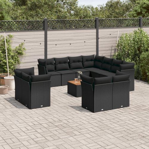 Salon de jardin 12 pcs avec coussins noir resine tressee