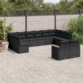 Salon de jardin 12 pcs avec coussins noir resine tressee