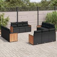 Salon de jardin 12 pcs avec coussins noir resine tressee
