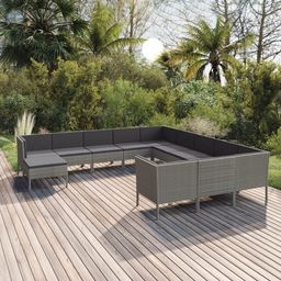 Salon de jardin 12 pcs avec coussins Resine tressee Gris