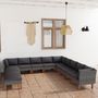 Salon de jardin 12 pcs avec coussins Resine tressee Gris