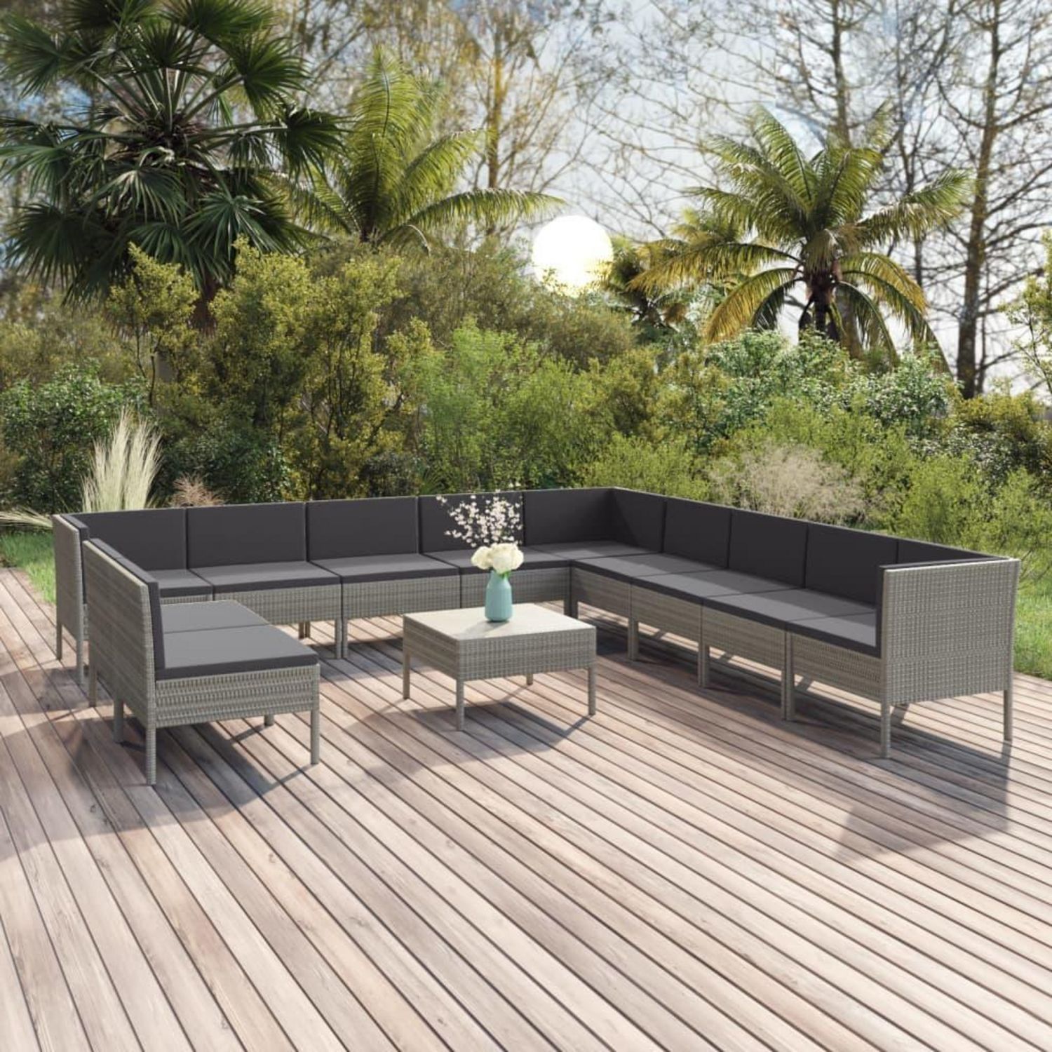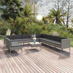 Salon de jardin 12 pcs avec coussins Resine tressee Gris