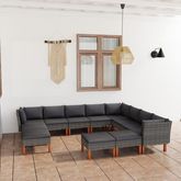 Salon de jardin 12 pcs avec coussins Resine tressee Gris
