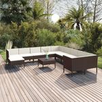 Salon de jardin 12 pcs avec coussins Resine tressee Marron