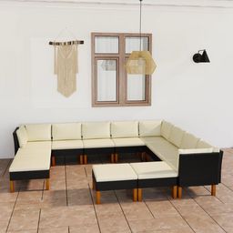 Salon de jardin 12 pcs avec coussins Resine tressee Noir
