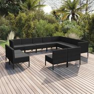 Salon de jardin 12 pcs avec coussins resine tressee noir