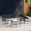 Salon de jardin 13 pcs avec coussins blanc bois de pin solide