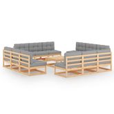 Salon de jardin 13 pcs avec coussins Bois de pin massif