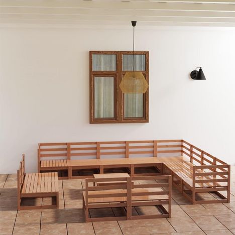 Salon de jardin 13 pcs marron miel bois de pin massif