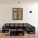 Salon de jardin 13 pcs noir bois de pin massif