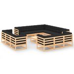 Salon de jardin 14 pcs avec coussins anthracite Pin massif