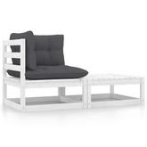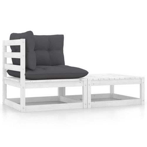 Salon de jardin 2 pcs avec coussins Blanc Bois de pin massif