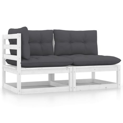 Salon de jardin 2 pcs avec coussins Blanc Bois de pin massif