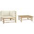 Salon de jardin 2 pcs avec coussins blanc creme Bambou