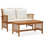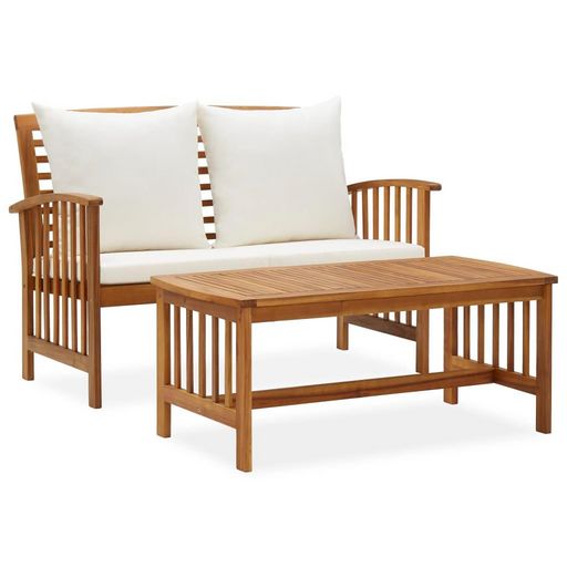 Salon de jardin 2 pcs avec coussins bois d'acacia solide