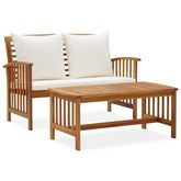 L'ensemble de meubles d'exterieur est construit en bois d'acacia massif avec une finition a l'huile, ce qui le rend stable et durable. Grace au dessus de table en bois massif au design a lattes, la table basse vous offre de l'espace pour mettre vos collations, paniers de fruits, objets decoratifs, ainsi que d'autres essentiels. Le coussin de siege et l'oreiller de dossier rendent le banc confortable pour y s'asseoir. Le dossier et les accoudoirs apportent un confort d'assise supplementaire.