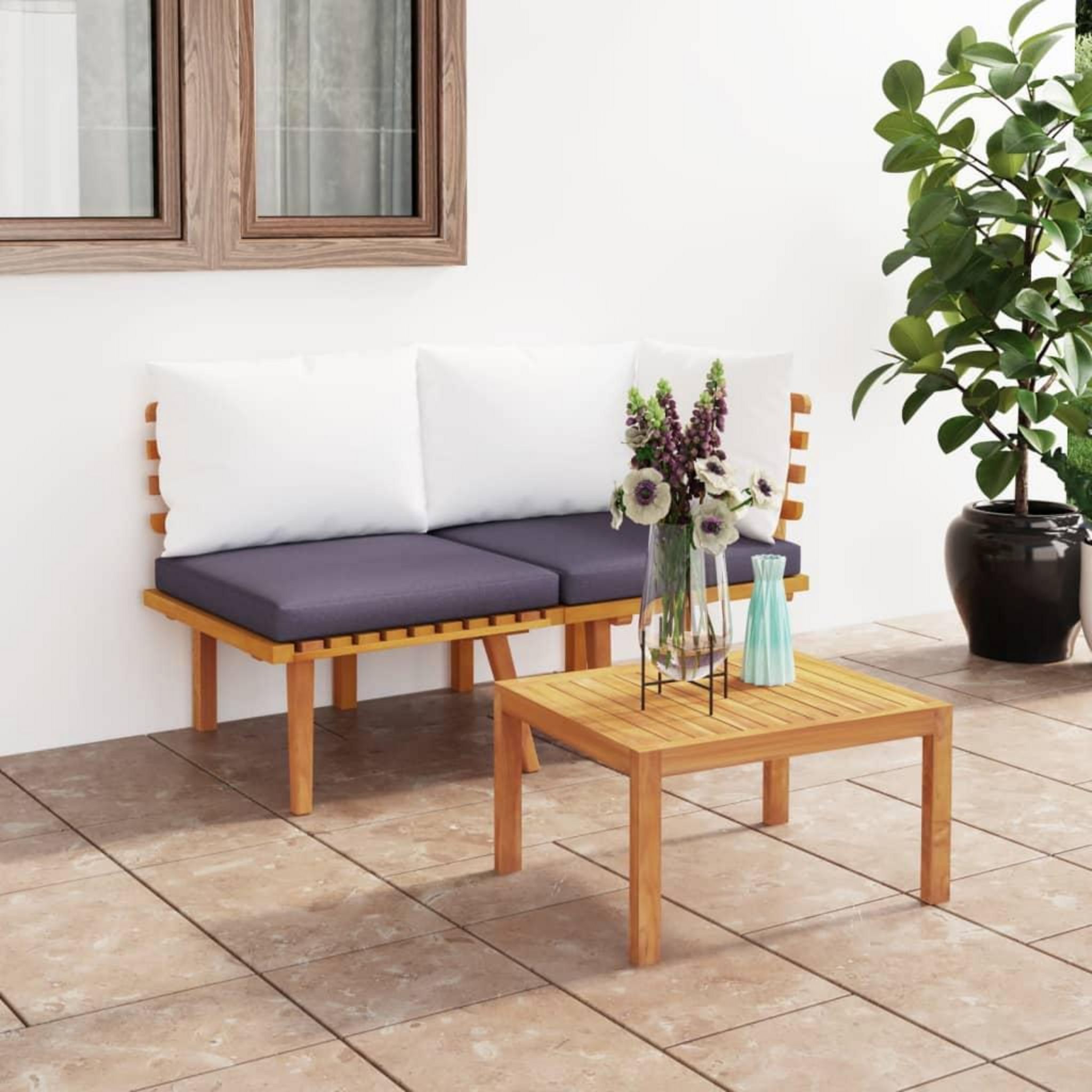 Fabrique en bois d'acacia massif, l'ensemble de meubles d'exterieur est resistant aux intemperies et hautement durable. Combine avec les coussins bien rembourres, ce salon de jardin offre le plus grand confort. Vous pouvez le combiner avec d'autres segments modulaires pour creer vos propres configurations de salon de jardin !