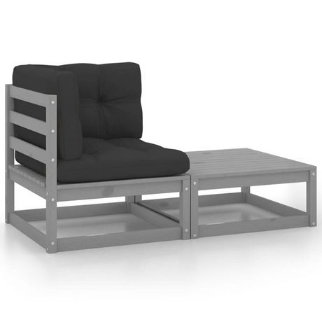 Salon de jardin 2 pcs avec coussins Gris Bois de pin massif