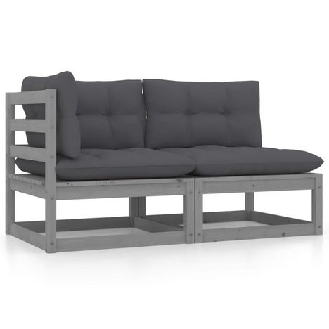 Salon de jardin 2 pcs avec coussins Gris Bois de pin massif